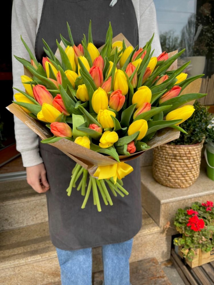 Čerstvé tulipány a jejich kytice jsou naše oblíbené jarní květiny. Jejich nekonečné množství barev vnáší do naší duše i do naši kanceláře nebo domova úsměv na rtech. Připravili jsme pro vás barevný mix, který vám nebo ženě, které květiny povezeme, jistě udělá velkou radost. V nabídce máme mix barev, ale vždy při jejich kombinaci dbáme na ten správně namíchaný barevný koktejl, aby výsledný dojem kytice tulipánů vypadal krásně. Na výběr máme buď kusový prodej nebo předvolené varianty. Výběr je pouze na vás. Tulipány vážeme, stejně jako růže, samostatně bez přidané zeleně nebo dalších květin (pokud nechcete jinak).