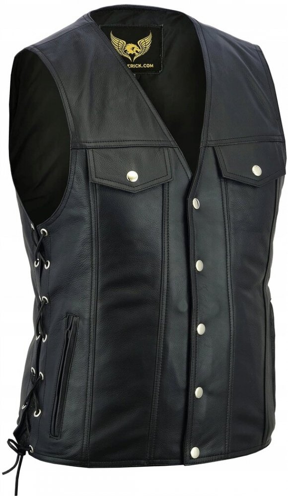 Pánská kožená vesta KM019 značky L&J RYPARD® je nejnovějším model kožené vesty v našem sortimentu. Mimořádně propracovaný a bohatý design ji odlišuje od ostatních produktů v této kategorii.