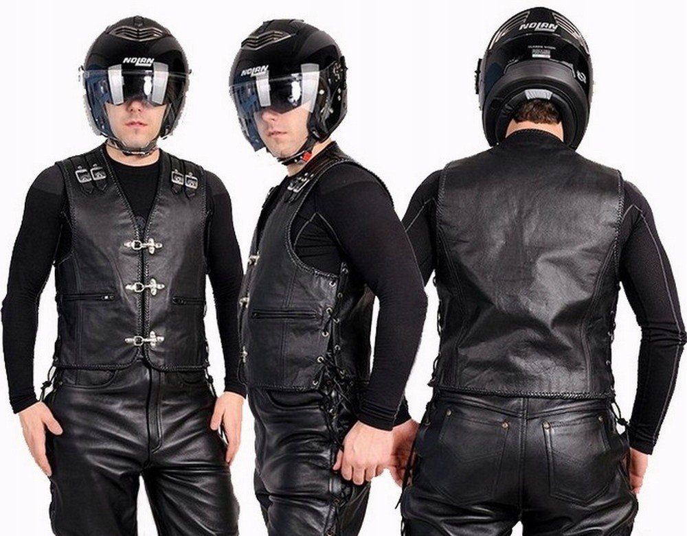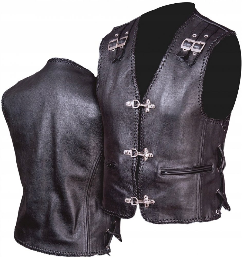 Kožená motocyklová vesta značky L&J RYPARD model KM005 je bezesporu bestsellerem a vlajkovou lodí naší značky v kategorii kožených vest. Již mnoho let je pečlivě propracována a vyrobena z nejkvalitnější přírodní hovězí kůže – díky čemuž ji oceňují i ti nejnáročnější motocyklistů. Bohatě zdobené – okraje potažené řemínky, ocelové – mimořádně odolné a pevné karabiny, očka v barvě chromu, silné kožené regulační řemínky a především ozdobné spony na ramenou, které jí dodávají neobvyklý a jedinečný design. Šitá z velkých plátků kůže, aby se zabránilo spojům v místech, kde se nejčastěji našívají klubové nášivky nebo emblémy. Skvělá jak na bundu, tak na tričko, dodá vám eleganci a třídu a zároveň vám umožní vyniknout z davu.