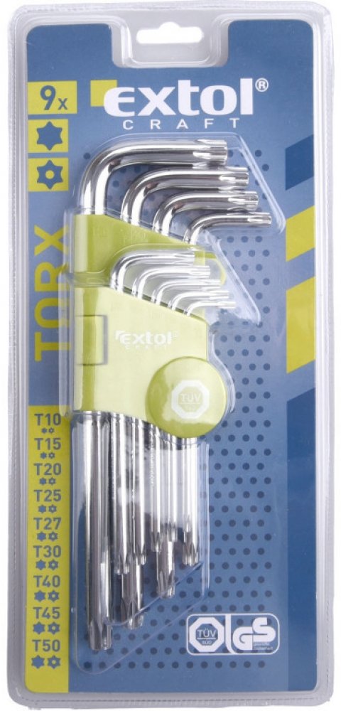 L-klíče TORX, sada 9ks, T 10-50 mm , vrtané