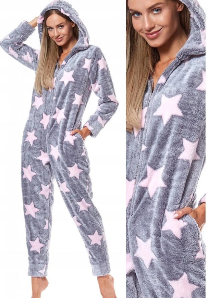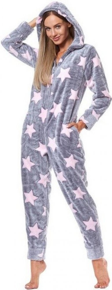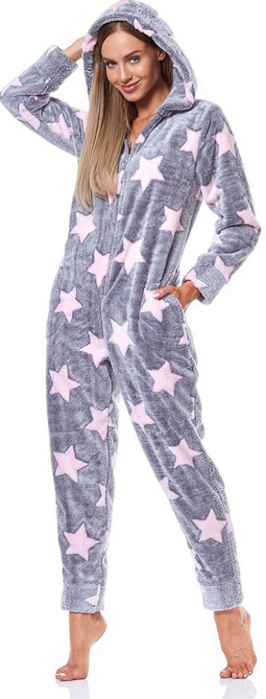 L & L dámský overal teplý soft 9151 Hvězdičky růžový