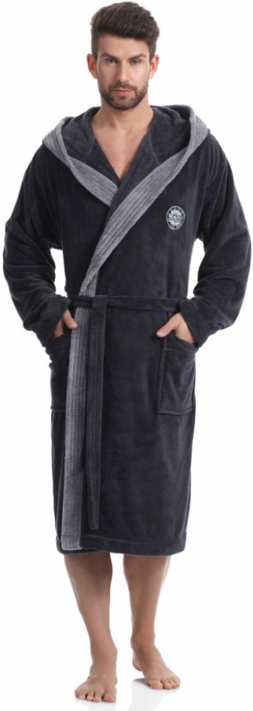 L&L pánský dlouhý župan George tmavě šedý