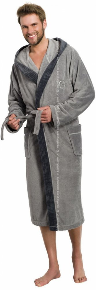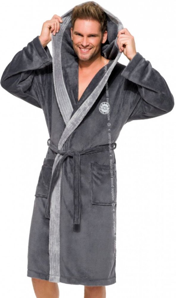 Pánský župan model 122867 L&L collection XXL šedý Zajímavý hladký župan s kapucí. Dobře sedí, v pase se zavazuje a na bocích má dvě kapsy. Potrubí v kontrastní barvě mu dodává zajímavý charakter. Záplata nahoře. Polský výrobek vysoké kvality. Oblečení » Pyžama, noční košile a župany » Župany » Pánský župan model 122867 L&L collection XXL šedý