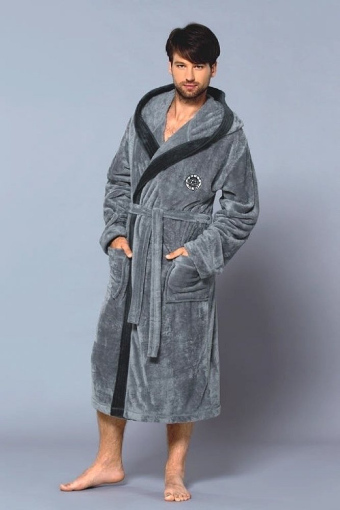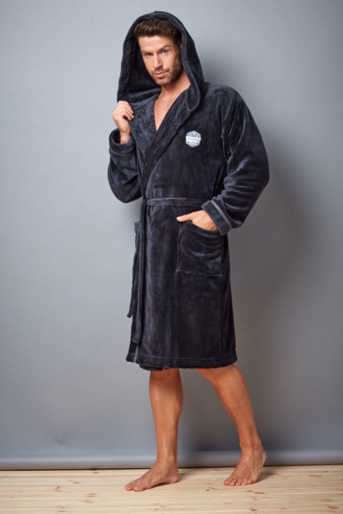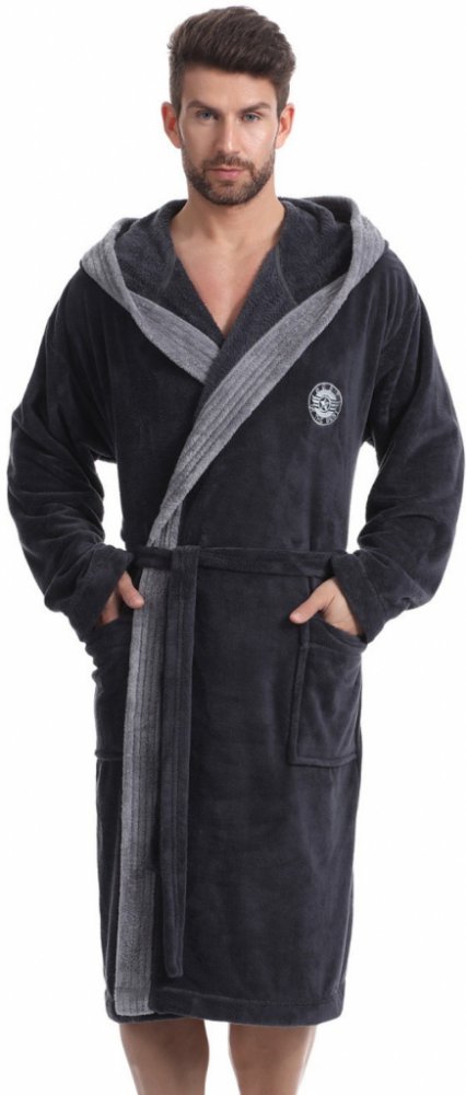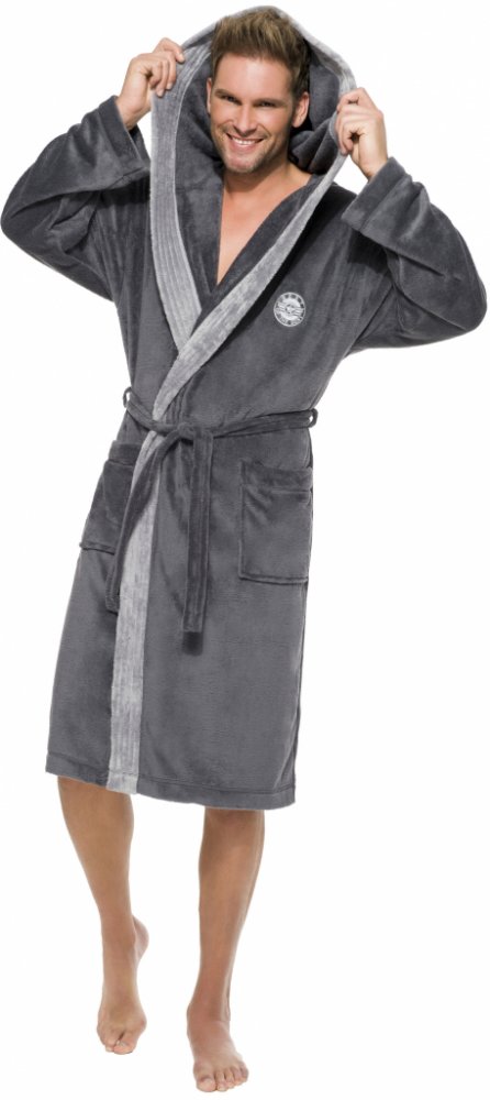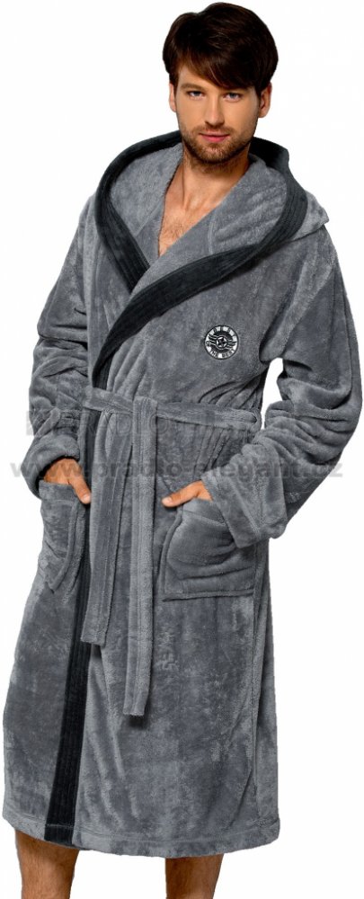 Pánský dlouhý župan L&L George s kapucí. Župan je huňatý a po stranách má kapsy. Zavazovaní je na pásek a na hrudi na levé straně je výšivka. Dlouhý pánský župan s kapucí a vázáním v pase. Ušitý je z měkké látky typu sofit. Na bocích jsou kapsy a na hrudníku našitá aplikace. Je velice příjemný na dotek a zajišťuje maximální pohodlí.