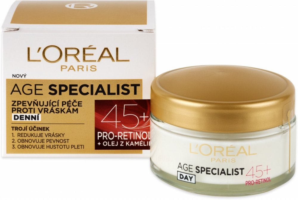 Po 45. roku života může pleti chybět výživa a objevují se hlubší vrásky. Pokožka je více vysušená. Tento jedinečný pleťový krém L´Oréal Paris Age Specialist 45+ Day Cream pokožku hloubkově vyživuje a zhutňuje. Pokožka je vyživená s pocitem komfortu a působí hutněji.