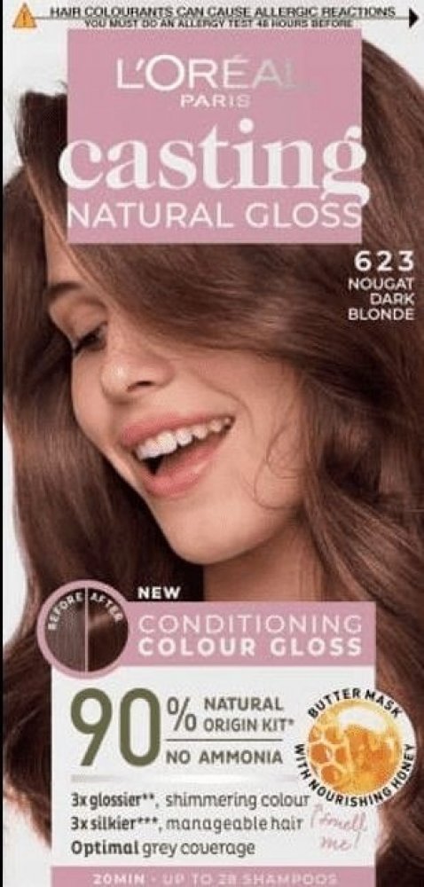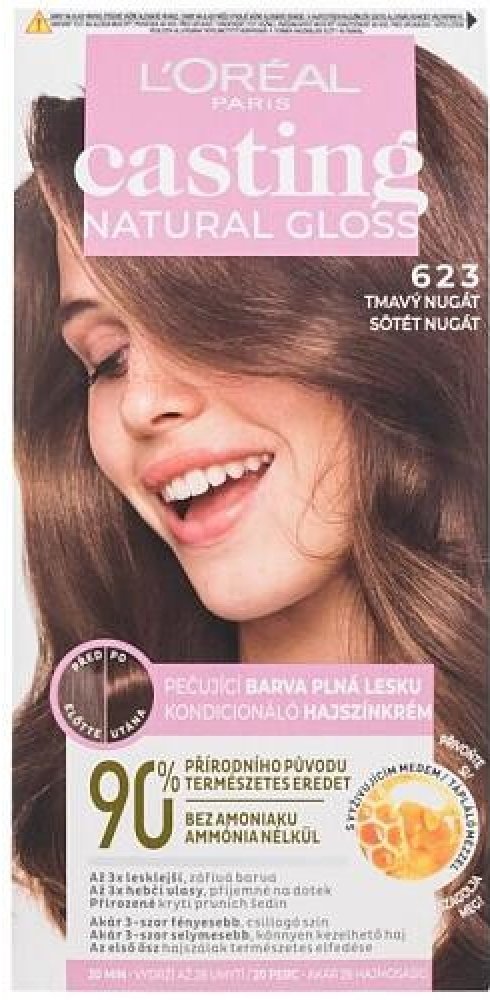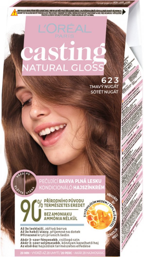 Preferujete barvení vlasů doma nežli u kadeřníka a zalíbila se vám blond barva? Potom vás zajisté potěší barva na vlasy ĽORÉAL PARIS, která dosahuje objemu 180 ml. Krémová barva se chlubí jednoduchým nanášením do vlasů. Zajímáme se o semipermanentní barvu ĽORÉAL PARIS Casting Natural Gloss 623 Tmavý nugát, která je snadno vymývatelná. Pomůže vás s obarvením celé hlavy. Disponuje přírodními složkami, tím se postará o nejlepší vzhled vaší hřívy. Důležité parametry barvy na vlasy ĽORÉAL PARIS Casting Natural Gloss 623 Tmavý nugát Tato barva vám pomůže dosáhnout vašeho oblíbeného odstínu jednoduše z pohodlí domova ĽORÉAL PARIS Casting Natural Gloss 623 Tmavý nugát vám zajistí komplexní obarvení Blond barva na vlasy podtrhne váš vzhled Semipermanentní barva zmizí po několikerém umytím hlavy Vlastnosti a složení: přírodní složky či oleje Jednoduché a rychlé barvení zajistí krémová forma barvy Barva na vlasy ĽORÉAL PARIS dostanete v objemu 180 ml