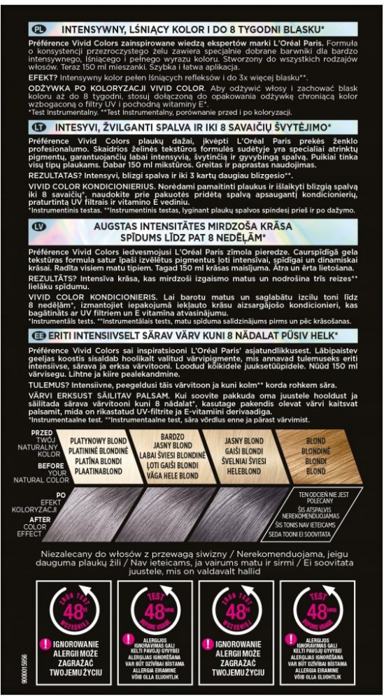 Préférence Vivid Colors je inspirována odbornými znalostmi značky L'Oréal Paris. Formule s konzistencí průhledného gelu obsahuje speciálně vybrané barviva pro velmi intenzivní, lesklý a plný výraz barvy. Rychlá a jednoduchá aplikace. Použijte kondicionér po barvení Vivid Color, abyste vyživili vlasy a zachovali zářivost barvy až po dobu 8 týdnů*.