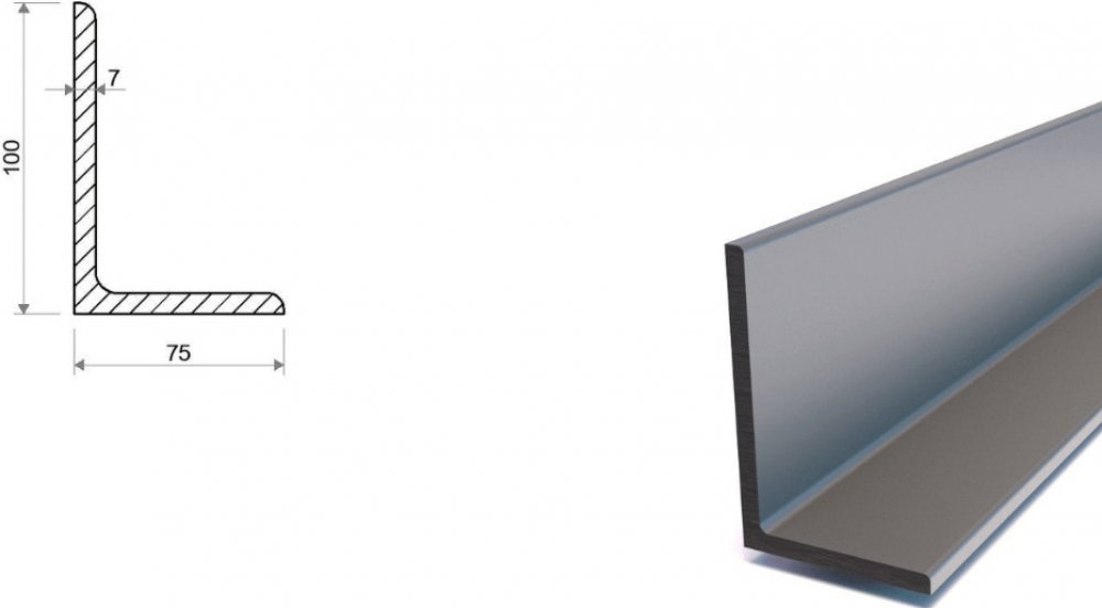 L profil 100x75x7 patří mezi profilovou ocel nerovnostranného průřezu L, která je válcovaná za tepla jakosti S235. L profil je známý také jako úhelník nebo vingl. Tento vingl 30x20x3 najde uplatnění jak ve stavebnictví, tak zámečnické výrobě – v místech, kde je ocel namáhána jak staticky tak dynamicky. Dodáván ve výrobních délkách po 6 m s hmotností 55,92 kg a tloušťkou 7 mm. Váha produktu na 1 m je 9,32 kg.