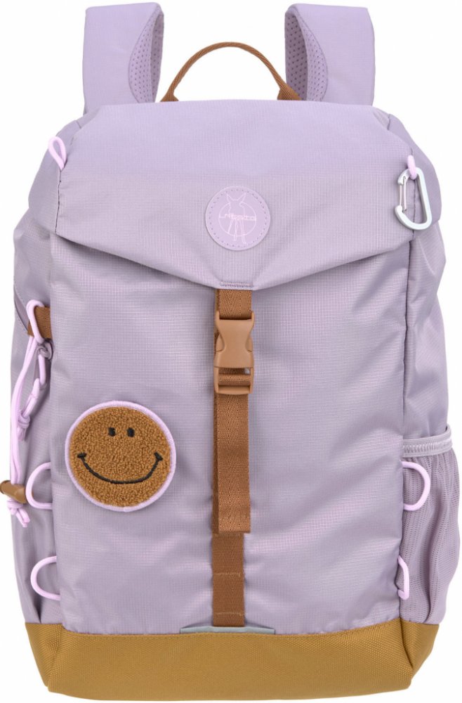 obrázek se smajlíkem na přední straně batůžku, který je možné sundat či přichytit pomocí patentky