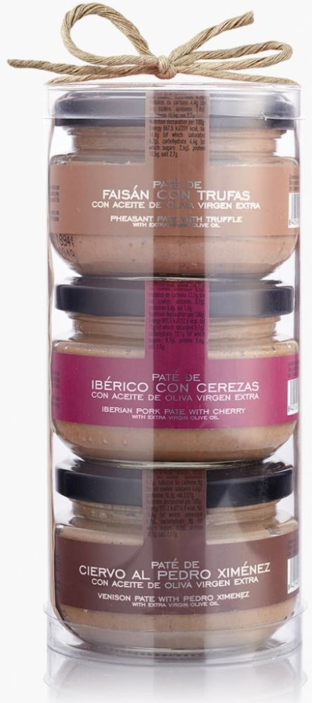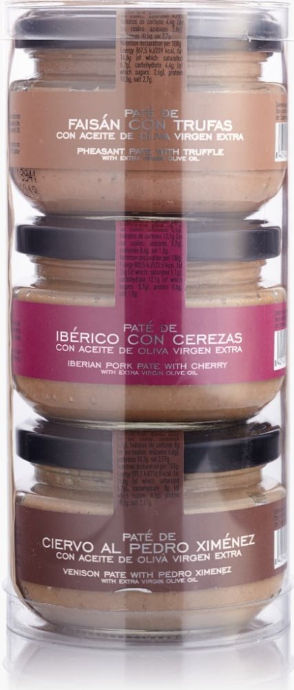 Kazeta masových paštik La Chinata obsahuje výběr tří různých gurmánských paštik La Chinata z vynikajícího masa nabízených v hezké kazetě dokonalé jako dárek nebo pro přinesení na večeři, na kterou jsme pozvaní. Všechny tři paštiky jsou vyrobeny z produktů nejvyšší kvality a extra panenského olivového oleje z naší vlastní sklizně.