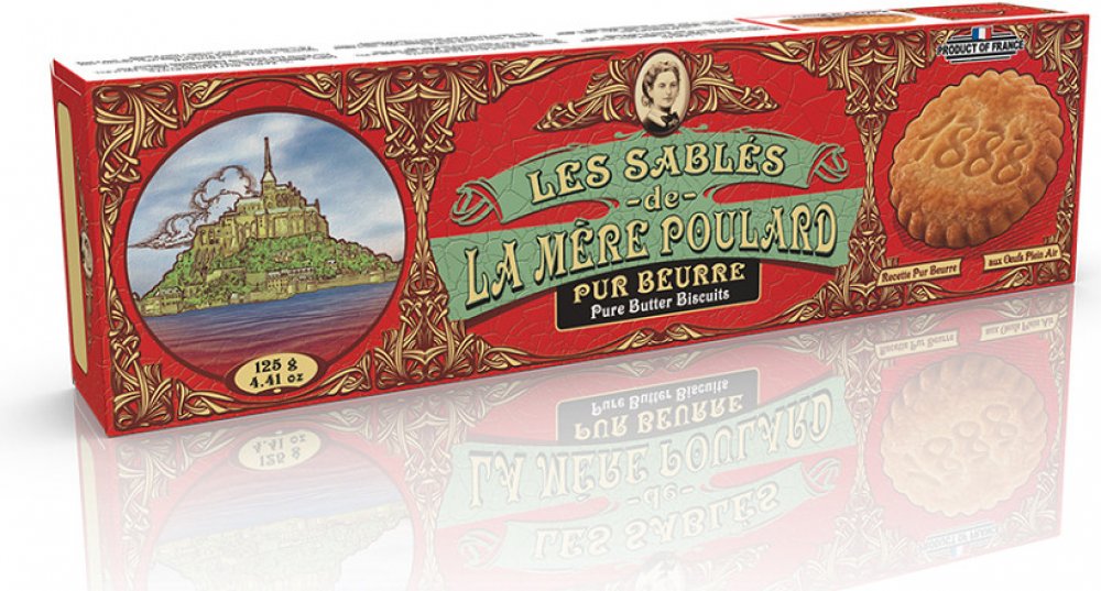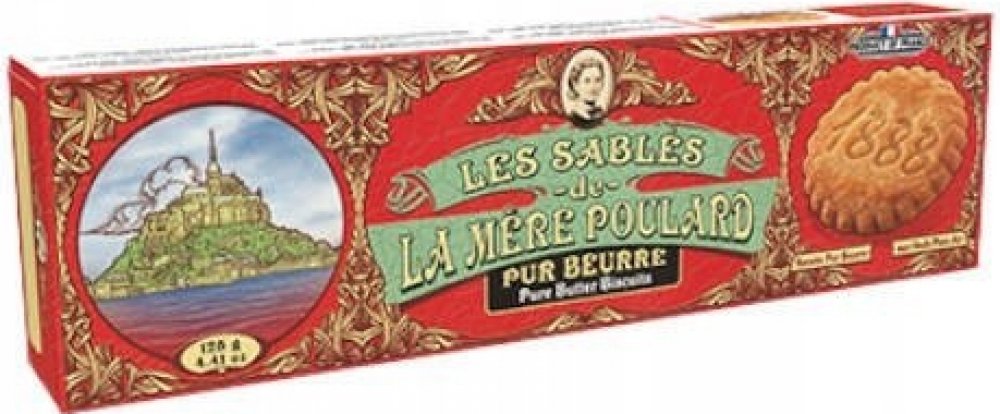Les Sables de La Mere Pur Beurre jsou vynikající francouzské křehké máslové sušenky. Balení obsahuje 16 (dvojitě balených) vynikajících sušenek připravených z pravého másla. Tyto slavné sušenky, vytvořené podle tradiční receptury La Mere Poulard, jsou ve Francii známé již více než století. Sables jsou skvělým doplňkem kávy a čaje, ideální pro chvilku sladkého potěšení.
