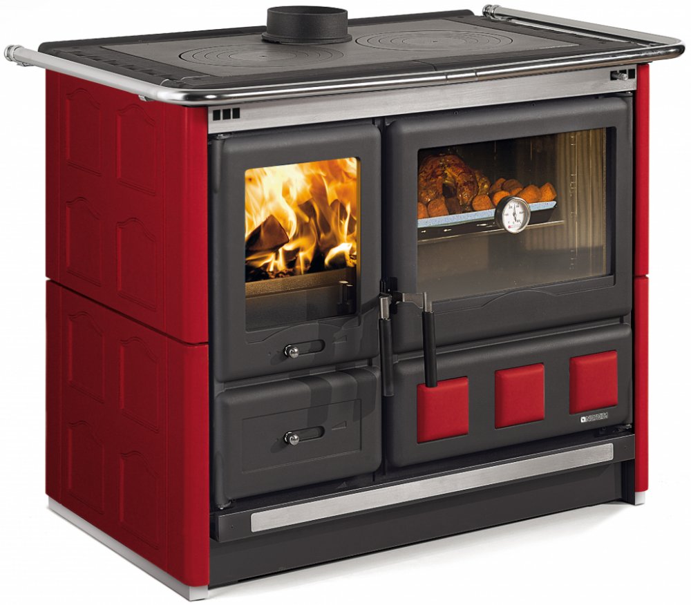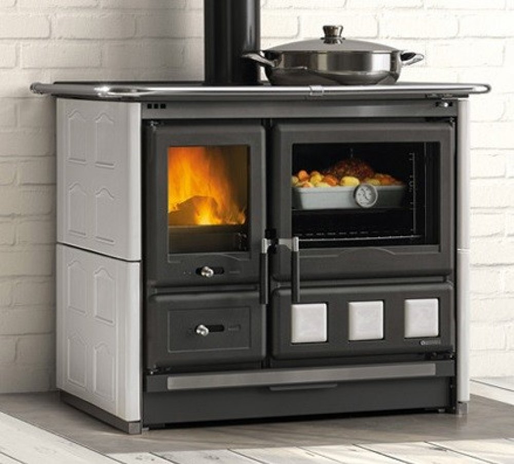 Kuchyňský sporák Nordica Rosa XXL Maiolica 8,5 kW s velkou troubou s keramickým opláštěním má jmenovitý výkon 8.5 kW, účinnost 85 %.