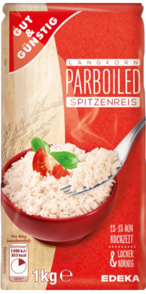 Parboiled rýže LA PERDIZ 1kg Vynikající španělská parboiled rýže je za syrova nažloutlá, po uvaření zbělá a zůstává sypkou. Tento druh rýže se zpracovává speciální technologií, kdy před loupáním zrna přechází pod tlakem část důležitých živin do jádra obilky. Tím se po zbavení vrchní slupky stává hodnotnější. PARBOILED RÝŽE DLOUHOZRNNÁ Návod k použití (2 porce) N Nasypte 125 g rýže do velkého hrnce s vařící se osolenou vodou (750 ml). Přikryjte pokličkou a na mírném ohni vařte cca 15-20 min dokud se voda nevyvaří. Skladování Uchovejte v chladu a suchu. Země původu Španělsko Výživové údaje na 100g Energetická hodnota 1472 kJ/346 kcal Tuky 0,4g z toho nasycené mastné kyseliny 0,3g Sacharidy 79g z toho cukry 0,7g Bílkoviny 7,6g Sůl 0g