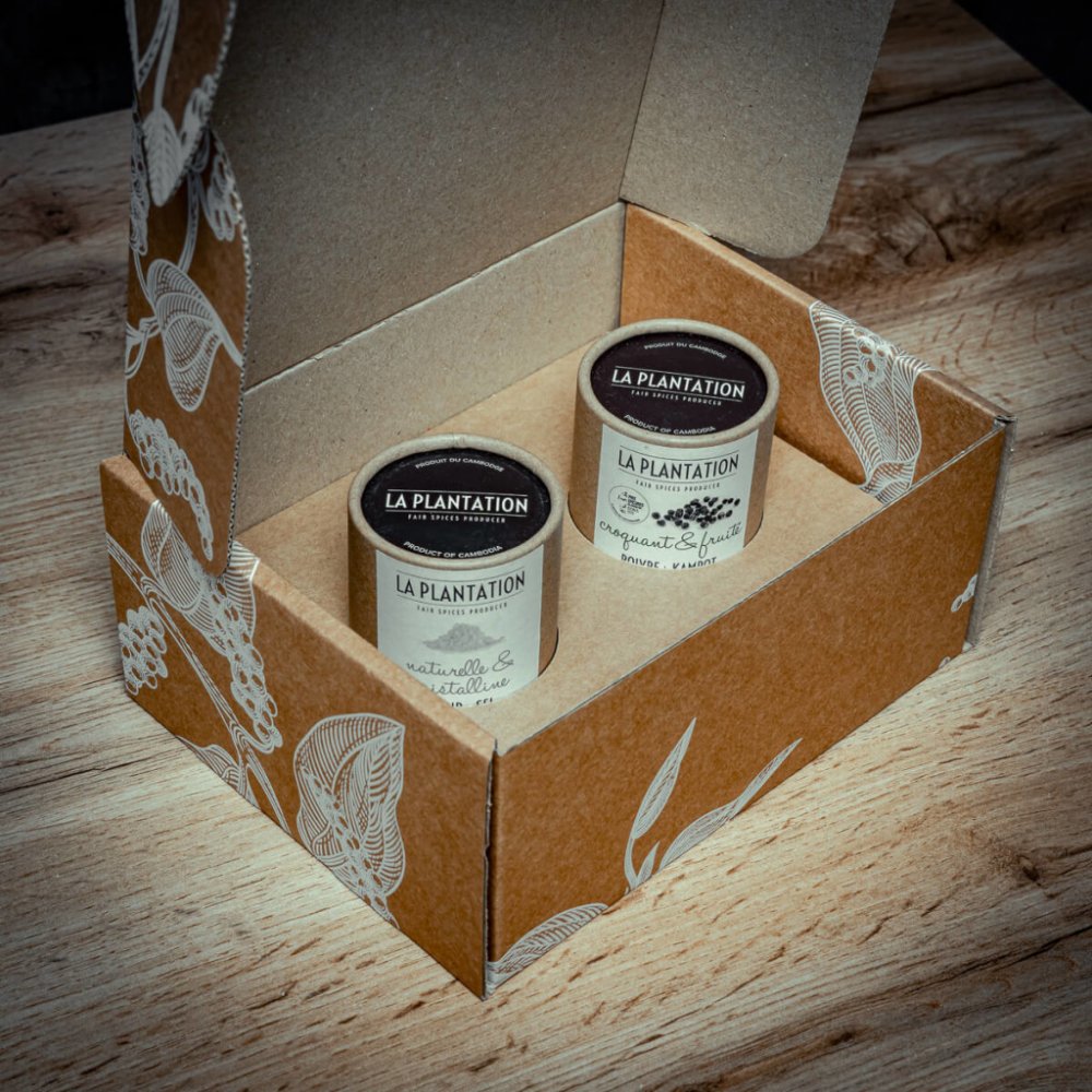 La Plantation Dárková sada Kampotský fermentovaný Pepř a Fleur de Sel 2x 50 g