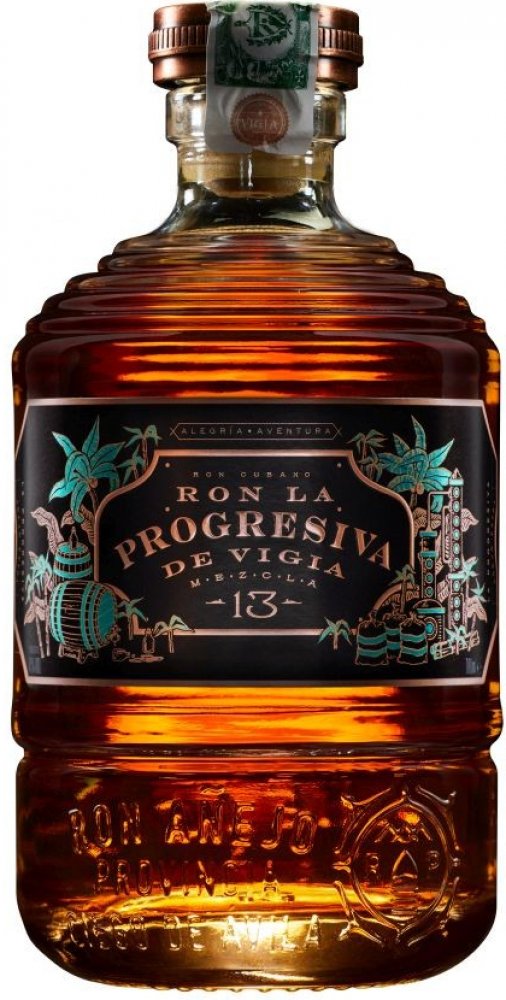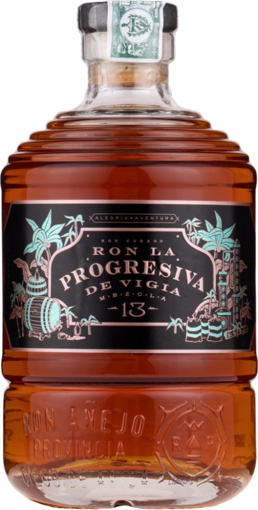 La Progresiva 13 je luxusní kubánský rum na popíjení se suchým, jemným charakterem a tóny zralých citrusů, medu z cukrové třtiny a dubového koření. Směs některých nejlepších ostrovních zásob vyzrálých rumů ze stáje luxusních rumů Vigia je šitá na míru progresivním znalcům řemeslných destilátů.