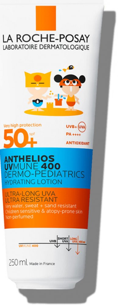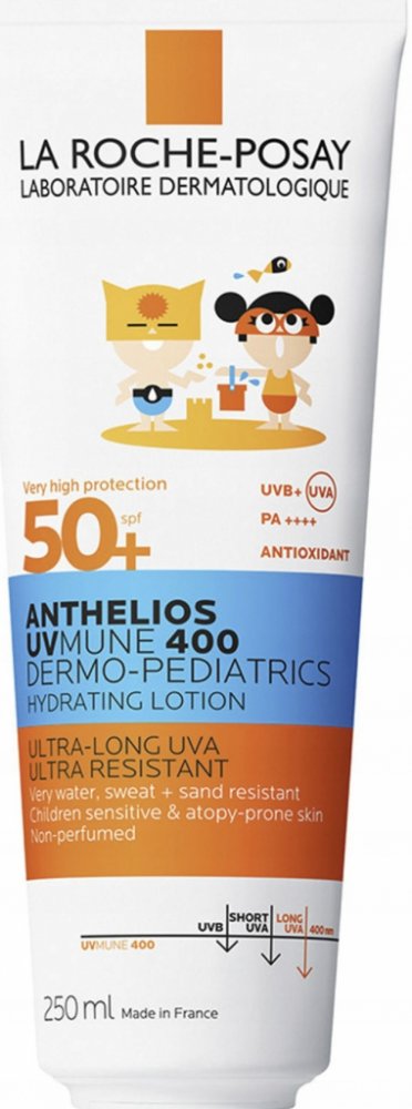 Velmi vysoká ochrana proti slunci pro obličej a tělo, speciálně vyvinutá pro citlivou a jemnou dětskou pokožku, včetně pokožky se sklonem k atopii. Díky pokročilému filtračnímu systému UVMune Mexoryl 400 chrání i proti ultra dlouhým UVA paprskům, které nejvíce přispívají k poškození kožních buněk.