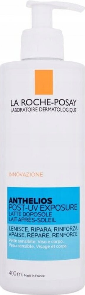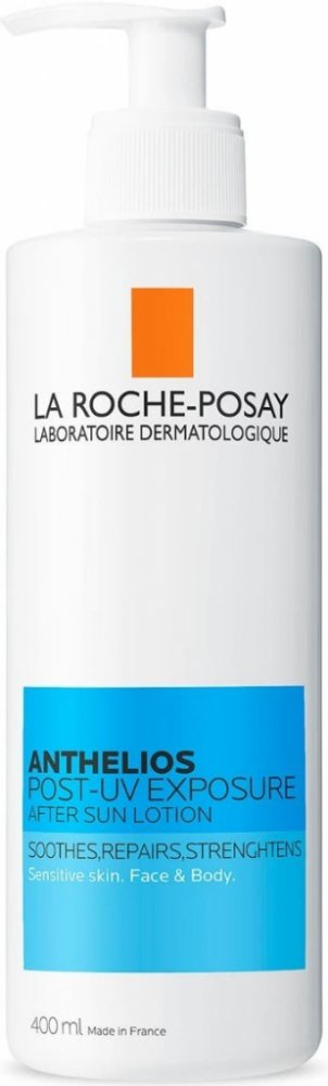 - La Roche Posay - La Roche-Posay Anthelios Post-UV Exposure After Sun Lotion 400 ml - Sluneční ochrana - Popis: Reparační koncentrovaná gelová péče po opalování na podrážděnou a přesušenou kůži po solární expozici. Snadná aplikace. Péče obohacená o relipidační složky. Zklidňuje pocity horka a spálení. Kůže je vyživená a hydratovaná. Aplikace: Lehce vmasírujte po koupeli