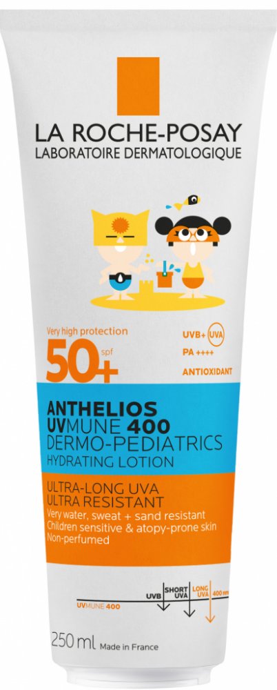 LA ROCHE-POSAY Anthelios UVMUNE 400 Dermo-Pediatrics hydratační mléko SPF50+, 250 ml LA ROCHE POSAY Anthelios UVMune400 Dermo-Pediatrics hydratační mléko SPF50+ pro ochranu proti ultradlouhovlnnému UVA záření. Ideální pro citlivou dětskou pokožku. Vhodné na obličej a tělo.