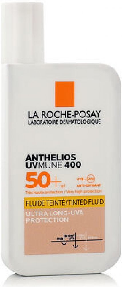 La Roche-Posay Anthelios UVMUNE 400 Tinted Fluid SPF 50+ 50 ml je lehký tónovaný opalovací fluid, který poskytuje velmi vysokou ochranu proti UVA/UVB záření, včetně dlouhovlnného UVA 400 nm záření. Díky tónovanému složení sjednocuje pleť, poskytuje přirozený vzhled a chrání pokožku před škodlivými účinky slunečního záření.Vlastnosti:SPF 50+ s širokospektrální ochranou proti UVA/UVB zářeníTónované složení, které sjednocuje tón pleti a zajišťuje přirozený vzhledLehká, nemastná textura, která se snadno vstřebáváVysoce voděodolné, odolné proti potu a pískuHypoalergenní, vhodné pro všechny typy pleti, včetně citlivéKlíčové benefity:Poskytuje velmi vysokou ochranu proti UV zářeníSjednocuje pleť a dodává jí přirozeně zdravý vzhledChrání před stárnutím způsobeným slunečním zářenímSnadno se nanáší a nezanechává bílý filmIdeální jako lehká alternativa make-upuPoužití:Naneste přiměřené množství fluidu na čistou a suchou pokožku obličeje před vystavením slunci.Rovnoměrně rozetřete, aby pleť získala sjednocený tón.Opakujte aplikaci každé dvě hodiny, zejména po koupání, osušení ručníkem nebo pocení.Vyhněte se oblasti očí, v případě zasažení oči důkladně opláchněte vodou.