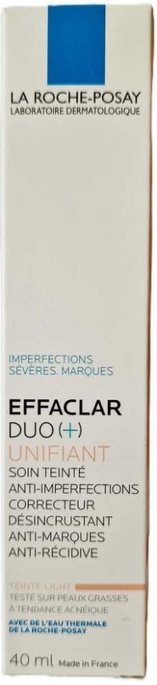 La Roche-Posay Effaclar DUO (+) (Light Shade) 40 ml je tónovaný krém na nedokonalosti pleti, který kombinuje korekční péči s přirozeným sjednocením tónu pleti. Poskytuje účinnou pomoc proti akné, pupínkům, skvrnám a zarudnutí, zatímco okamžitě zlepšuje vzhled pleti díky lehkému tónovanému složení.Vlastnosti:Obsahuje niacinamid a procerad, které pomáhají redukovat nedokonalosti a předcházet vzniku reziduálních jizevSalicylová kyselina a LHA jemně exfoliují pleť a čistí póryTónované složení v odstínu Light Shade sjednocuje pleť a zakrývá nedokonalostiNemastná textura se rychle vstřebává a nezanechává pleť lesklouHypoalergenní, nekomedogenní, dermatologicky testovánoKlíčové benefity:Redukuje výskyt pupínků, skvrn a zarudnutíSjednocuje pleť a poskytuje lehké krytí bez pocitu maskyZanechává pleť hladkou, čistou a matnouVhodný pro každodenní použití, ideální pro mastnou a aknózní pleťPoskytuje péči i estetickou korekci v jednom krokuPoužití:Naneste malé množství krému na čistou a suchou pleť ráno jako poslední krok péče.Jemně rozetřete po celém obličeji nebo lokálně na postižené oblasti.Používejte samostatně nebo jako podklad pod lehký make-up.Pro lepší výsledky kombinujte s čisticími produkty z řady Effaclar.