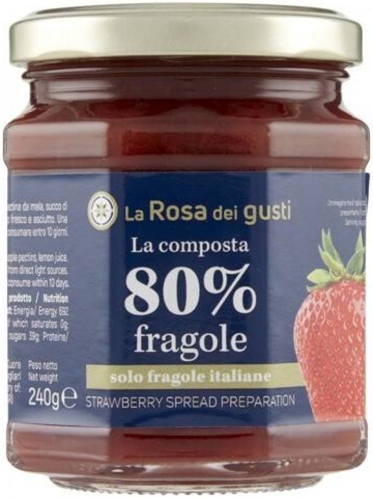 80% jahodový džem.Pouze italské jahody a pouze ovocné suroviny.