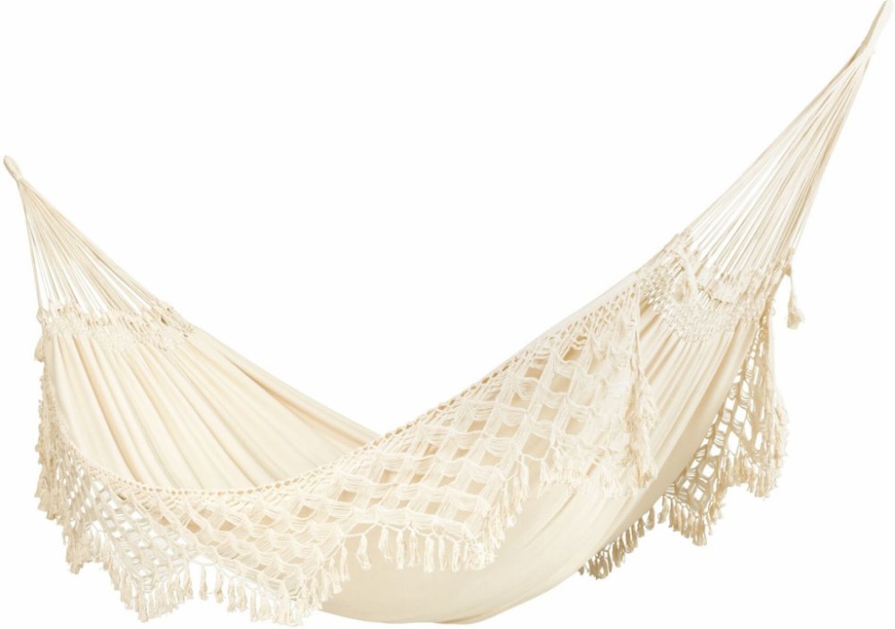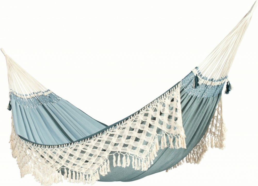 Luxusní rodinná houpací síť BOSSANOVA z organické bavlny je mimořádně prostorná a sametově měkká – nepřekonatelná relaxace v tradičním brazilském stylu. Díky speciální technice tkaní a diagonální a pružné vazbě se látka dokonale přizpůsobí křivkám vašeho těla. Stejně jako ostatní brazilské sítě Bossanovu zdobí Macramé a dekorativní krajky na bocích. Velký počet závěsný šňůr zajišťuje rovnoměrné rozložení váhy a vynikající pohodlí. Organická bavlna je měkká na dotek a nenáročná na údržbu. Jakou velikost houpací sítě vybrat? Houpací síť nebo sedačku? Jak síť zavěsit a jak si do ní lehnout? Nejvyšší kvalita BIO