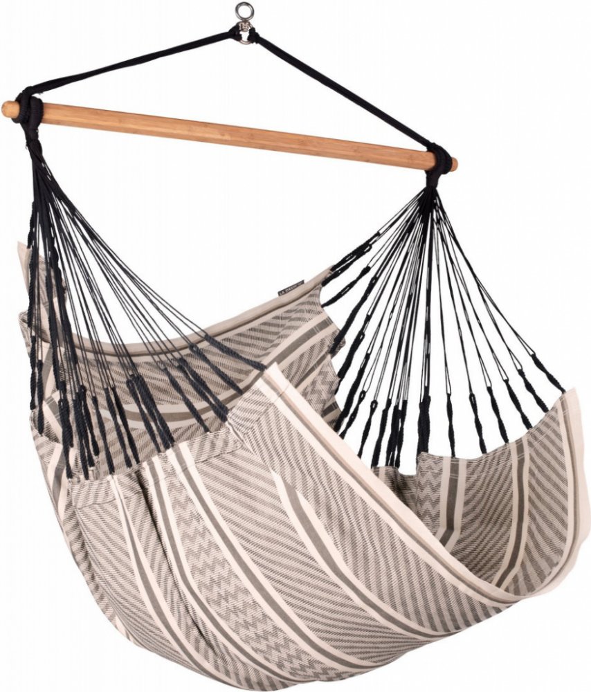 Sedačka dále disponuje rozpěrnou tyčí z kvalitního bambusového dřeva z udržitelného hospodářství FSC®. Dřevo má navíc díky speciální technologii zpracování příjemně hladký povrch a vysokou odolnost vůči povětrnostním vlivům. Integrovaný otočný čep s 360°rotací zajistí pohodlné a bezpečné otáčení kolem vlastní osy, aniž by došle ke zkřížení závěsných šňůr. Celková nosnost činí až 130 kg.
