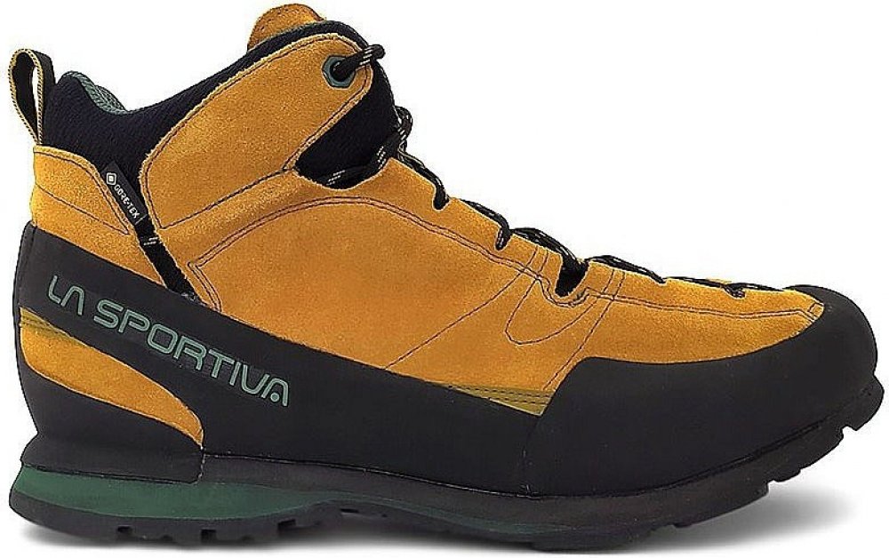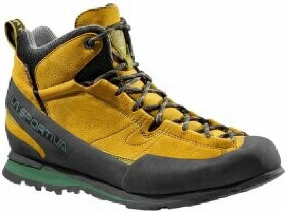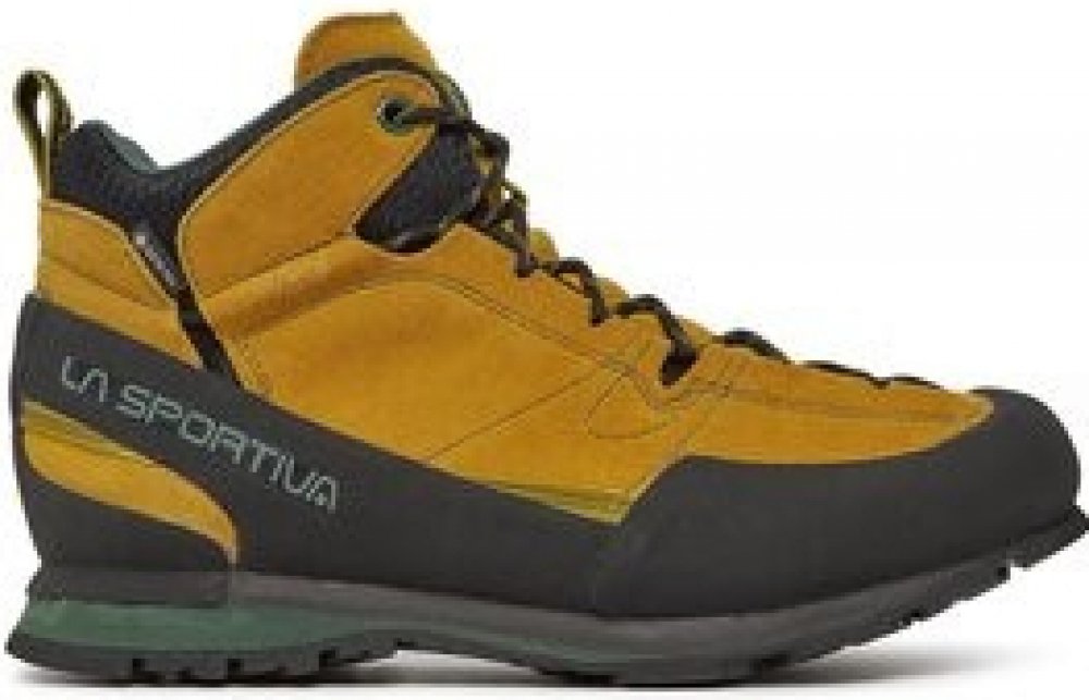 Speciálně navrženo pro horské záchranné týmy a vysokohorské průvodce. Boulder X Mid jsou pánské boty od výrobce La Sportiva, které jsou vybaveny celogumovým lemem pro ochranu proti nárazům a oděru. Podšívka GORE-TEX zaručuje optimální klima kontrolovaný komfort i po náročné turistice. Patentovaný systém šněrování pochází z projektu Mythos. Vysoká tlumicí vrstva 2 mm EVA tlumí chodidlo, zaručuje vysokou úroveň tlumení nárazů a zvyšuje celkový komfort boty. Vibram Sole with Impact Brake System je vybavena stoupací zónou ve špičce pro maximální přilnavost při lezení.