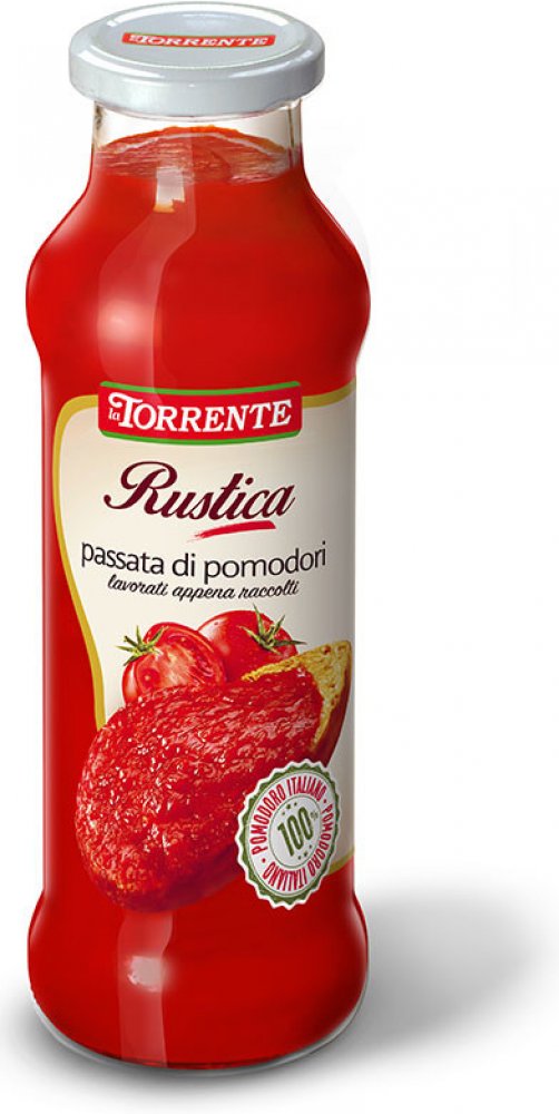 Passata rustica rajčatové pyré extra husté LA TORRENTE 700g Rajčatové pyré Rustico na venkovský způsob vzniklo ze starodávné vesnické tradice, která si zachovává typickou chuť středozemní kuchyně. Pyré Rustico je výrobek s vysokým výtěžkem, díky nízkému obsahu vody a zvýšené koncentraci rajčat má hustou konzistenci a intenzivní chuť. Chuť a ryzost z jiné doby z něj činí perfektní omáčku do tradičn...