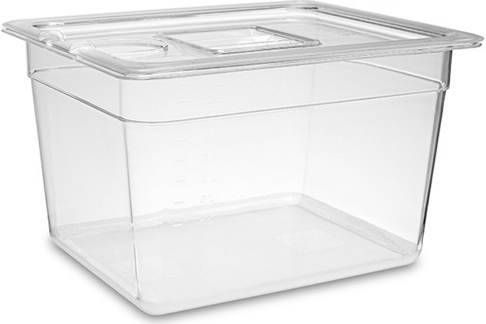 Tato sous-vide nádoba z průhledného, tepelně odolného plastu funguje perfektně v kombinaci s Lavide Sous Vide Stick LX.20 nebo téměř jakoukoli jinou tyčovou sous-vide cirkulační hlavicí na trhu. Díky výřezu pro cirkulační hlavici průhledné víko dokonale dosedá na nádobu. Tím je zajištěno, že v lázni zůstane teplo mnohem lépe a že se ani během delší doby vaření neodpaří takřka žádná voda. Šetříte...