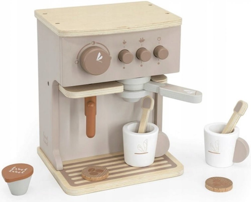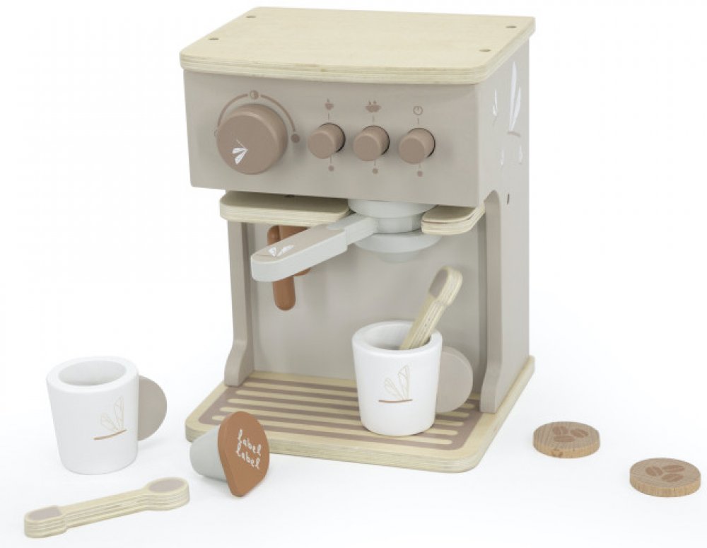 Pohodlně se usaďte, relaxujte a vychutnejte si lahodné espresso, které vám připraví váš malý barista pomocí úžasného kávovaru z kolekce dřevěných hraček Label Label.