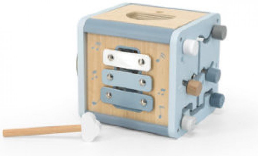 Vlastnosti: - multifunkční kostka je pro děti fascinující hračkou se spoustou dynamických aktivit k hraní - sttimuluje kreativitu a logické myšlení, jemnou motoriku a také poznávání a hravé učení - podporuje dovednost rozeznat různé tvary a barvy, základy počítání nebo dovednost přiřazování - součástí jsou 4 vkládací tvary, xylofon, pohyblivé bludistě, vrchní hlavolam a labyrint z korálků - doporučený věk: 12 měsíců+
