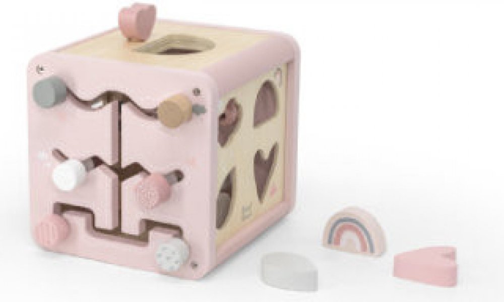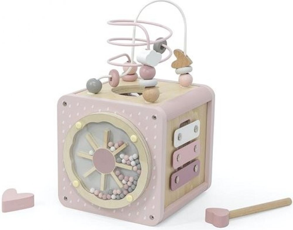 Vlastnosti: - multifunkční kostka je pro děti fascinující hračkou se spoustou dynamických aktivit k hraní - sttimuluje kreativitu a logické myšlení, jemnou motoriku a také poznávání a hravé učení - podporuje dovednost rozeznat různé tvary a barvy, základy počítání nebo dovednost přiřazování - součástí jsou 4 vkládací tvary, xylofon, pohyblivé bludistě, vrchní hlavolam a labyrint z korálků - doporučený věk: 12 měsíců+