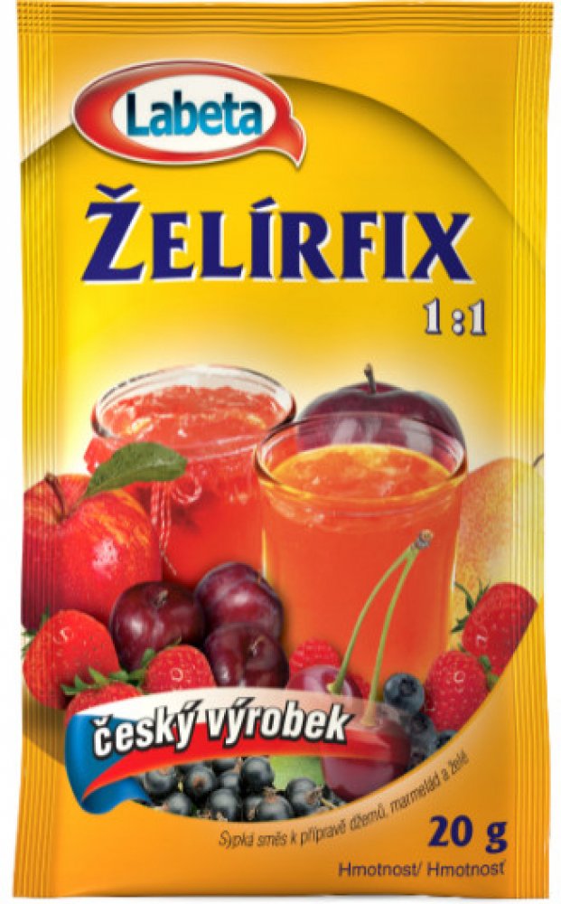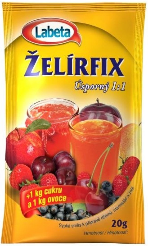 Labeta Želírfix 1:1 20 g. Dostali jste od sousedky koš meruněk, ale koláčů jste již přejedení? Zkuste si z nich připravit výtečný džem. A pokud máte čas, můžete si pohrát s chutěmi. Jednodruhové džemy jsou klasikou, která nikdy neomrzí. Ale co takhle zkombinovat meruňky s vanilkou nebo limetkou? Vaší fantazii se meze nekladou. Pokud máte po ruce ovoce, které nepatří mezi nejsladší, sáhněte po Želírfixu 1:1, ke kterému musíte při výrobě džemu dosypat ještě 1 kg cukru. Složení : Cukr, želírující látky (guma guar, xanthan, pektiny, guma tara, karubin), antioxidant: kyselina askorbová, kyselina: kyselina citronová, extrakt z oregána.