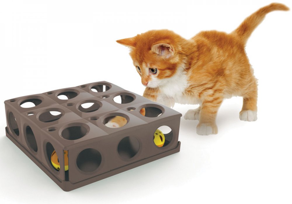 Diky mnoha otvorum je přístupná v každém bodě. Kočka může zkoušet co se jí packou povede dosáhnout - a zabaví se na dlouhé hodiny.