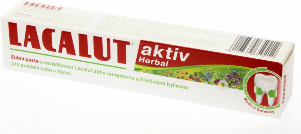- Zubní pasta Lacalu Kräuterformel obsahuje jedinečné složení bylinných extraktů (kamélie, kramérie, myrha, třezalka, šalvěj ). Stará se o příjemný a svěží pocit v ústech.