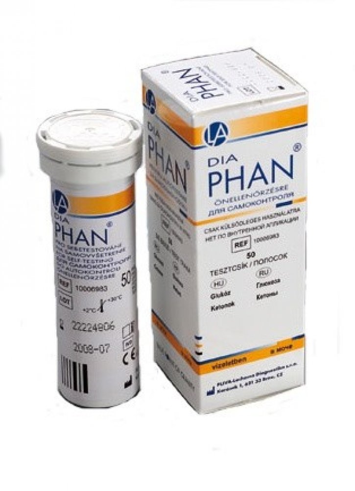 DP DiaPhan je zdravotnický prostředek určený k sebetestování ve formě diagnostických proužků na analýzu moči. Proužky pro diabetické pacienty jsou určeny ke sledování dvou základních analytů, kterými jsou glukóza a ketony. Glukóza patří mezi fyziologické součásti moče. Zvýšené vylučování glukózy do moče je průkazným příznakem diabetu. Druhou sledovanou složkou jsou ketony, jejichž detekce v moči j...