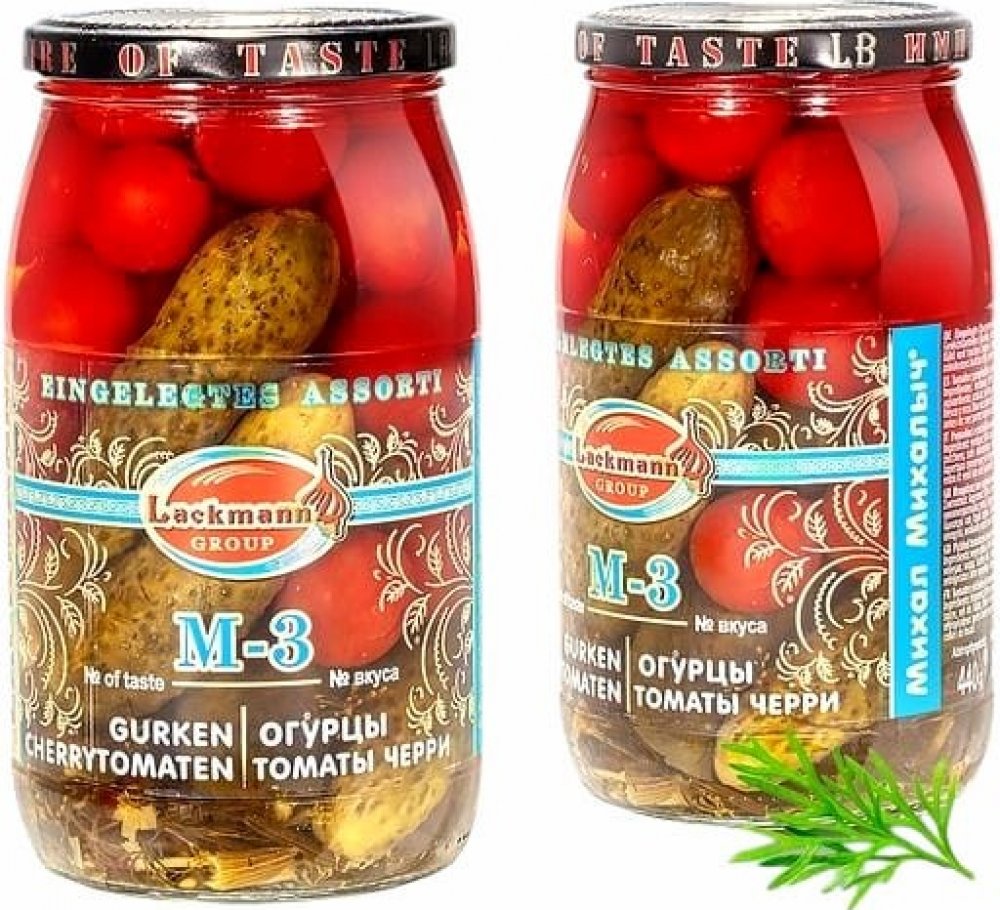Assorti okurky a cherry rajčata M-3 900 g Lackmann