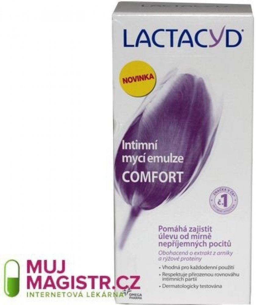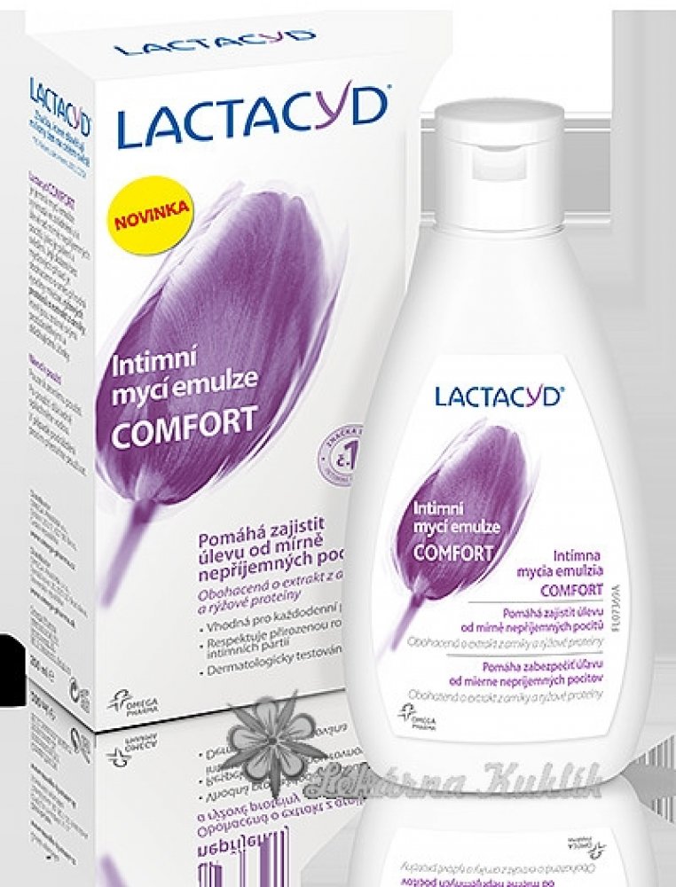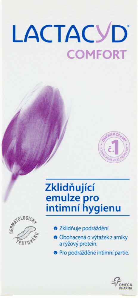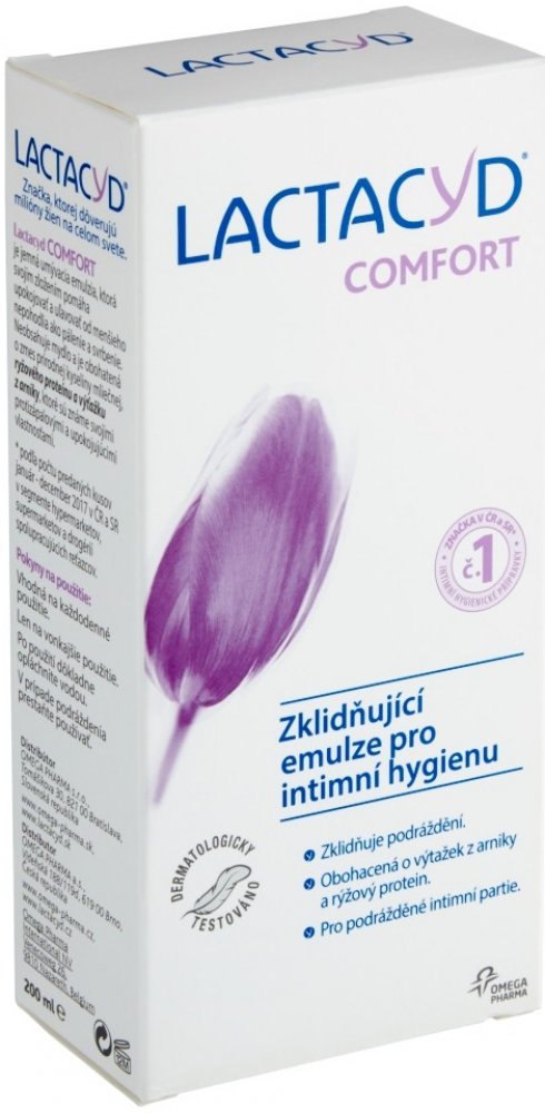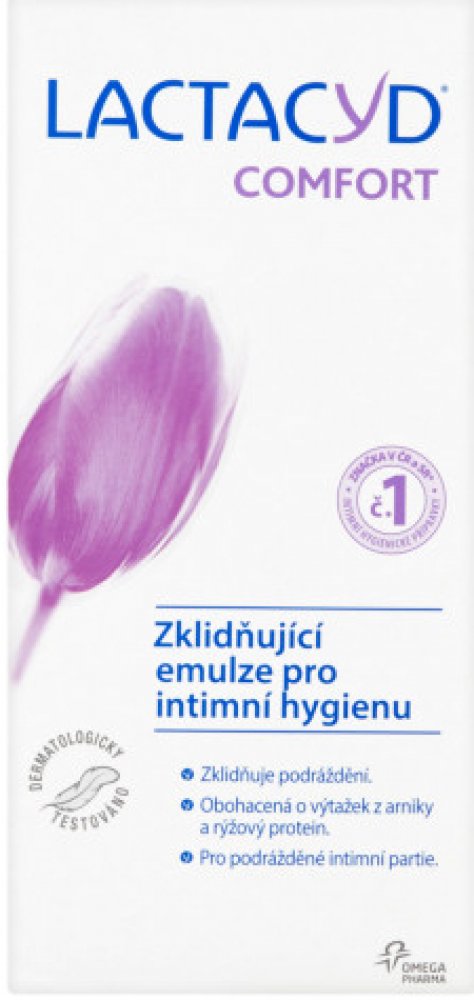 Intimní sprchový gel Lactacyd Comfort má speciální složení a je určen pro mytí intimních partií. Dodává dlouhotrvající pocit svěžesti a čistoty. Složení je obohaceno o směs přírodní kyseliny mléčné, rýžového proteinu a výtažky z arniky, které příjemně zklidňují, osvěžují a hydratují pokožku. Přírodní kyselina mléčná - má hydratační, antibakteriální a protizánětlivé účinky, zklidňuje podráždění a současně potlačuje množení bakterií. Výtažky z arniky - hydratují a zklidňují pokožku, dodávají pocit svěžesti.