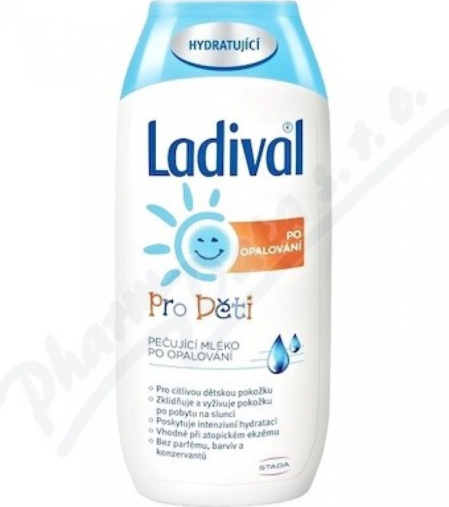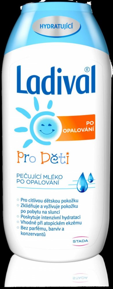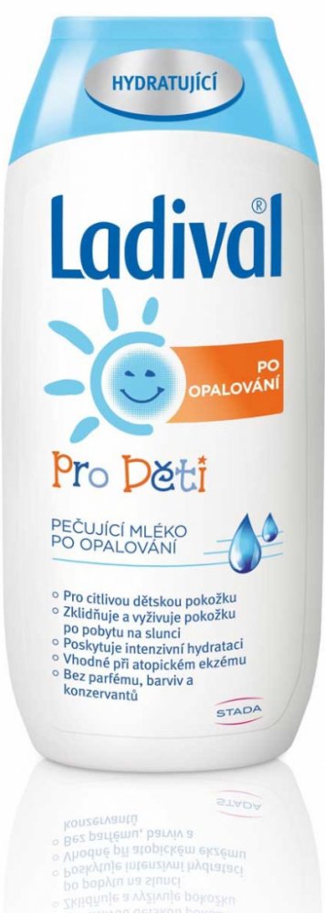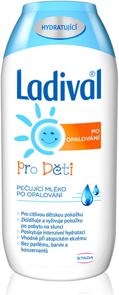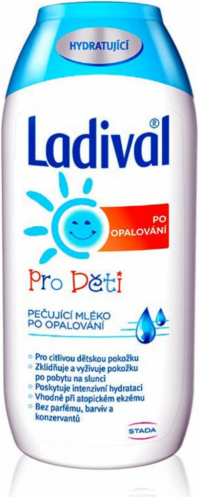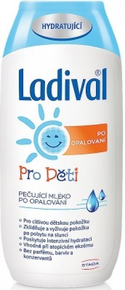 Ladival Děti po opalování pečující mléko po opalování je vhodné pro citlivou dětskou pokožku. Zklidňuje a vyživuje pokožku po pobytu na slunci a poskytuje intenzivní hydrataci. Mléko po opalování je vhodné i při atopickém ekzému. Neobsahuje parfém, barviva ani konzervanty.