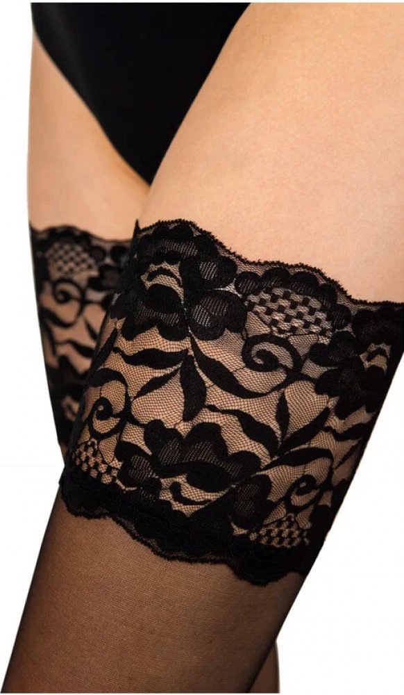 Dámské samodržící punčochy z kolekce LadyB PASSION HOLD UPS v síle 20 DEN jsou jemné punčochy zdobené extra vysokou krajkou. Výška krajky je 13 centimertů a má v horní části 2 široké silikonové pásky, které přilnou k pokožce a drží punčochy na svém místě. Punčochy jsou tak samonosné. Tvarově stálé a pružné díky elastanu, vyrobené z kvalitního úpletu. Společenské punčochy jsou velmi svůdné, vhodné ...