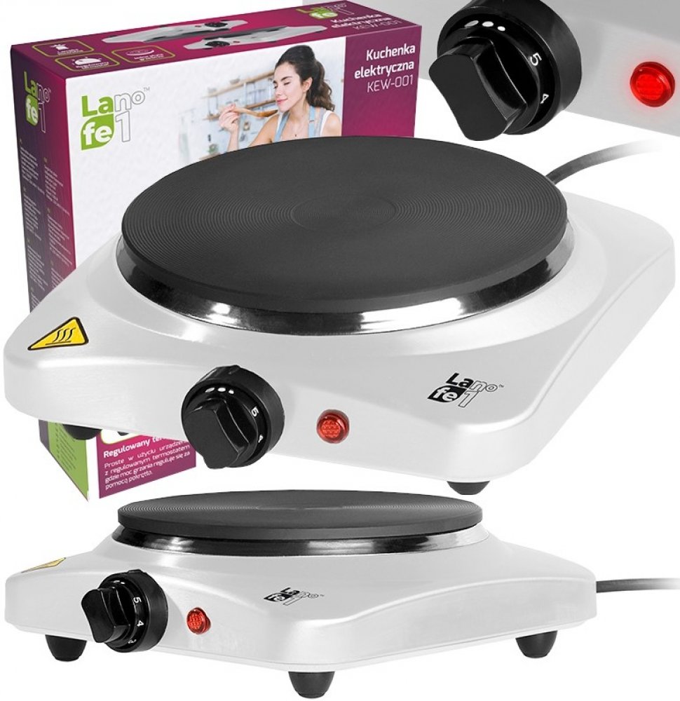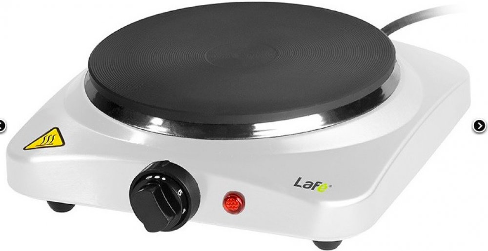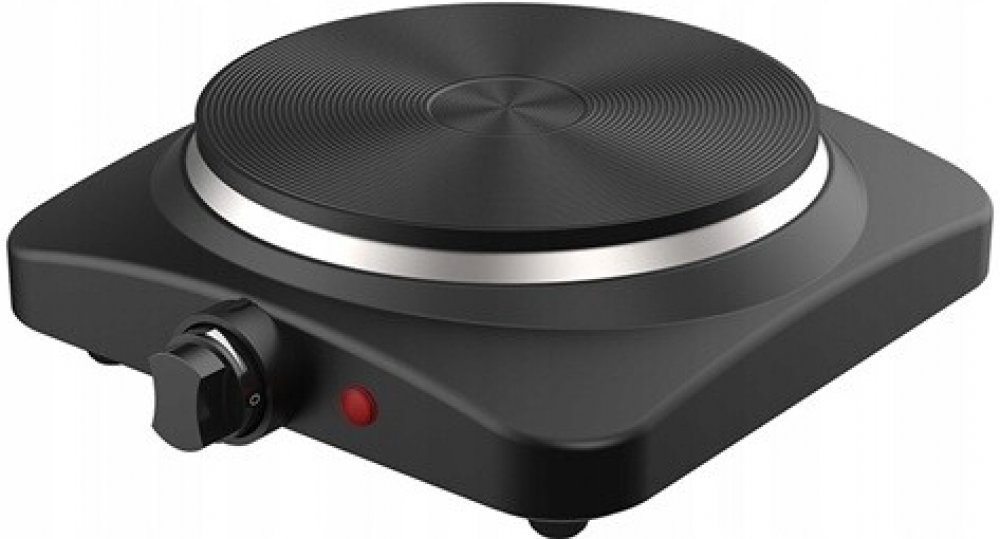 Elektrický sporák 1500 W. Má jednu varnou desku, nastavitelný termostat a kontrolku. Snadno se čistí, s neklouzavými nohami.