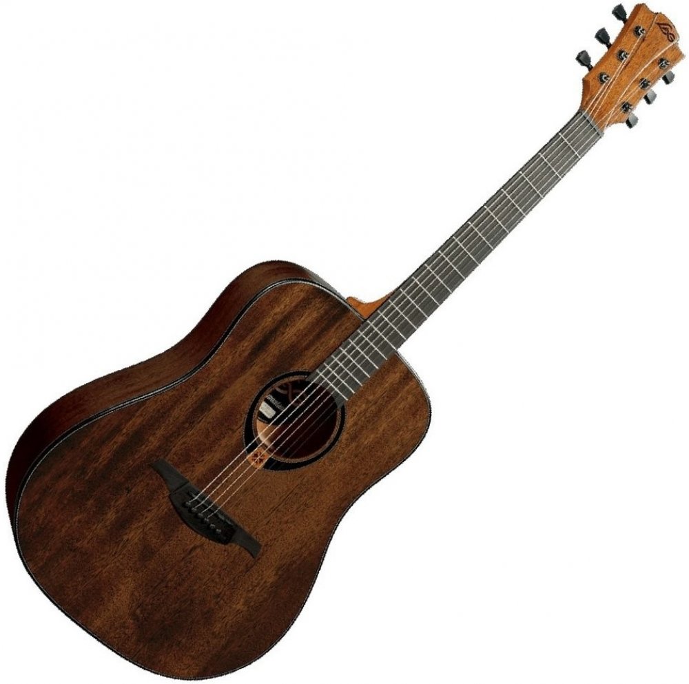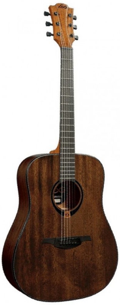 akustická kytara, dreadnought, vrchní deska, luby, zadní deska a krk: dřevo Khaya tropical (typ mahagonu), hmatník a kobylka: palisandr, 20 silver/nickel medium pražců, grafitový nultý pražec se šířkou 43 mm, grafitová sedlovka se šířkou 72 mm, menzura 650 mm, struny D' Addario EXP, lesk