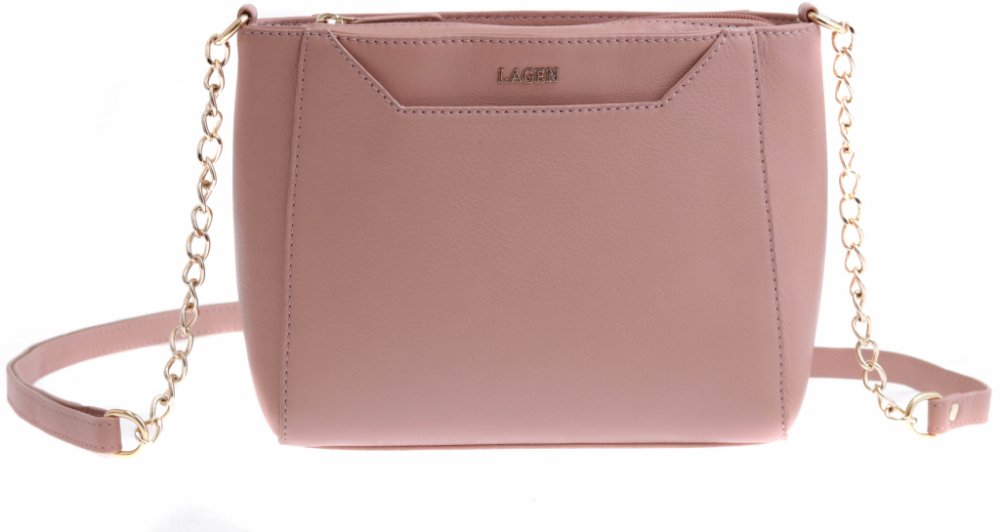 Krásná kožená kabelka od značky Lagen je velmi zdobným kouskem, a to díky zlatým doplňkům a zlatému řetízku.