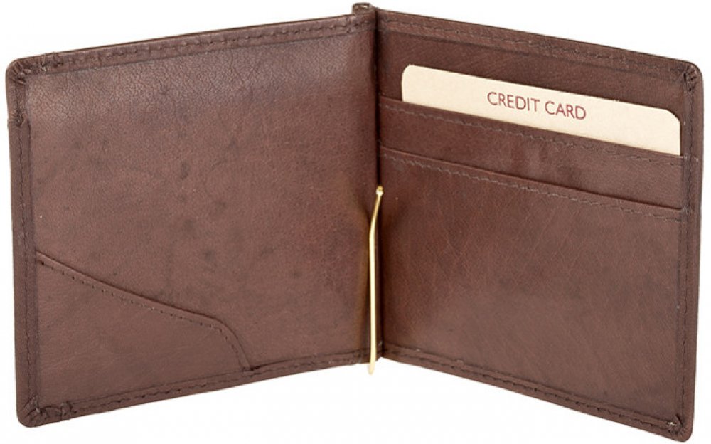 Minimalistická kožená peněženka se sponou na bankovky.