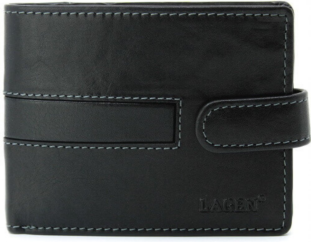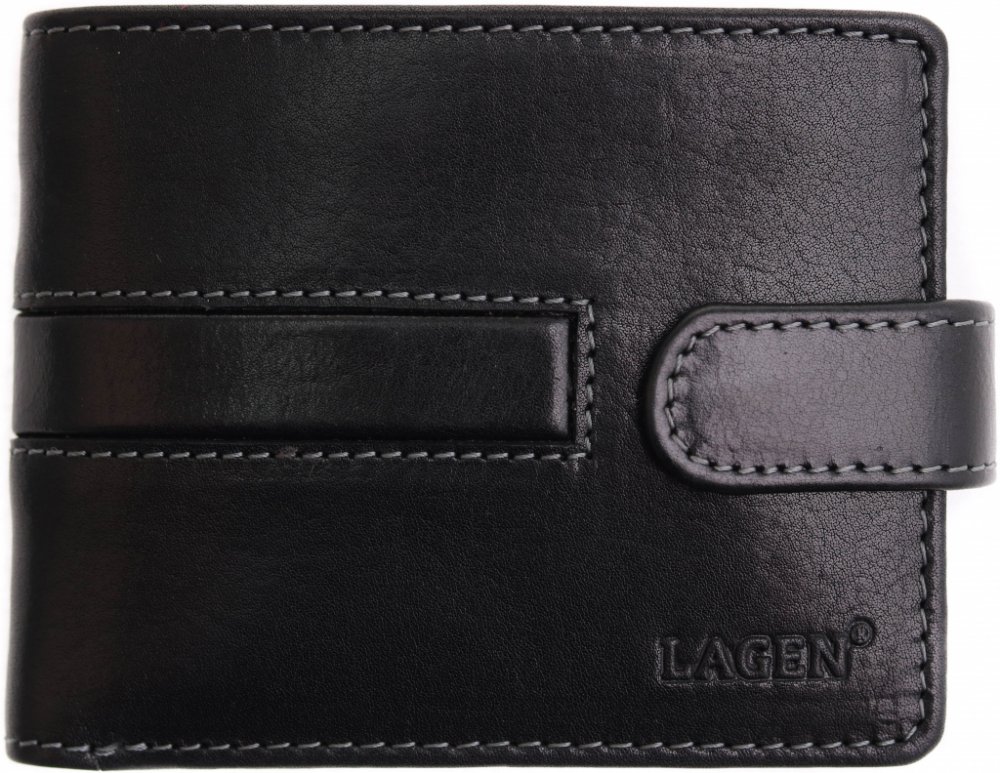Moderní pánská kožená peněženka se světlým prošíváním a s vytlačovaným logem výrobce Lagen. Vybavená a praktická - to charakterizuje tuto koženou peněženku otevírající se na šířku.