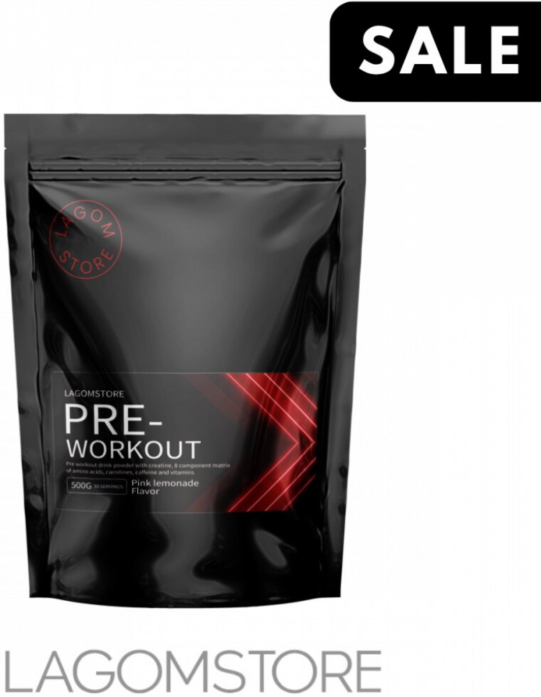 Lagomstore Pre-Workout je předtréninkový energizující nápojový prášek s obsahem 18 aktivních účinných látek, se 100% přírodních zdrojů kofeinu, kreatinu, beta alaninu.