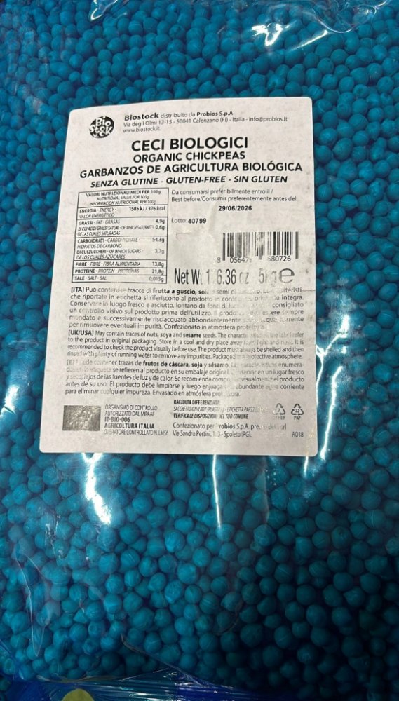 Energetická hodnota 1300 kJ / 310 kcal; Tuky 4,6 g z toho nasycené mastné kyseliny 0,6 g; Sacharidy 32 g z toho cukry 2,7 g; Vláknina 28 g; Bílkoviny 21 g; Sůl 0,01 g