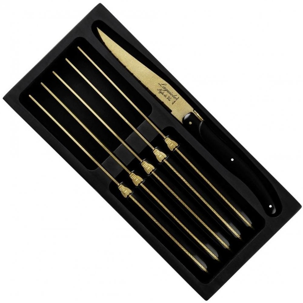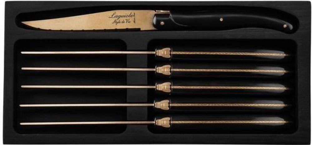 Laguiole Prestige Gold Style de Vie sada steakových nožů černá 6 ks