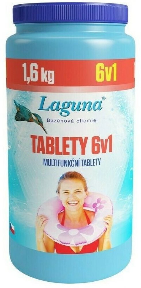 Laguna 6v1 tablety (tablety 200 g) je moderní víceúčelový, chlorový přípravek pro celosezónní průběžnou údržbu vody ve všech typech bazénů. Likviduje baktérie a řasy, zabraňuje jejich růstu, umožňuje vyvločkování nečistot, stabilizuje aktivní chlor a tvrdost vody, projasňuje (zlepšuje efektivitu filtrace)